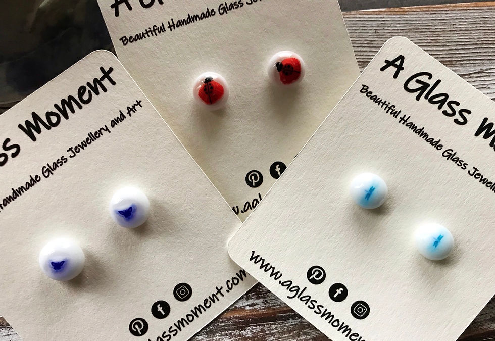 Fused Glass Ear-rings: Butterfly;ladybird;dragonfly;bee